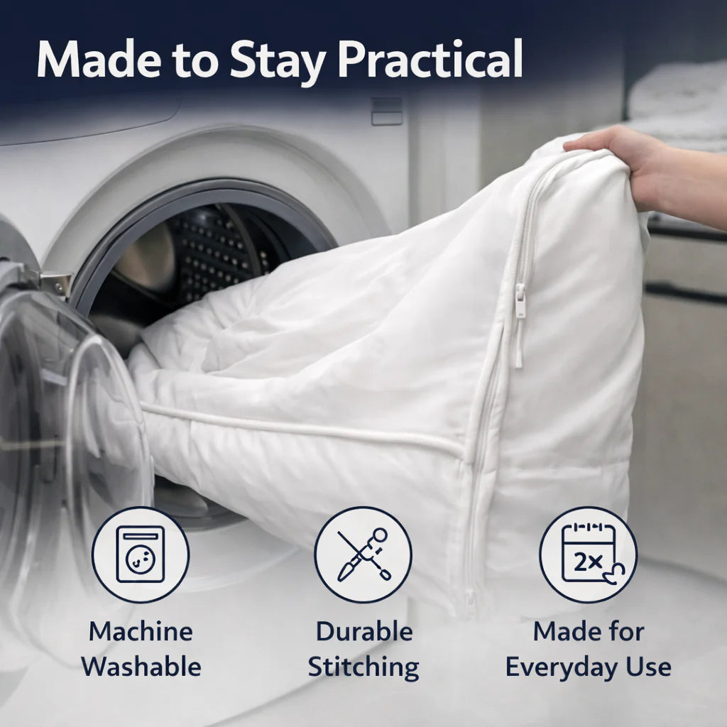 Life happens — spills, dust, pet hair.That’s why it’s fully machine washable and easy to remove in seconds.